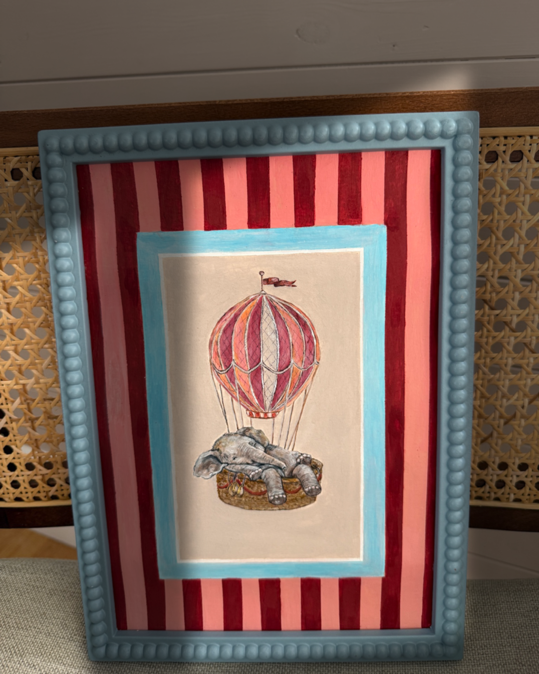 This original acrylic painting is framed in an A4 blue bobbin frame and is a beautiful choice for anyone looking to decorate their little one's nursery.